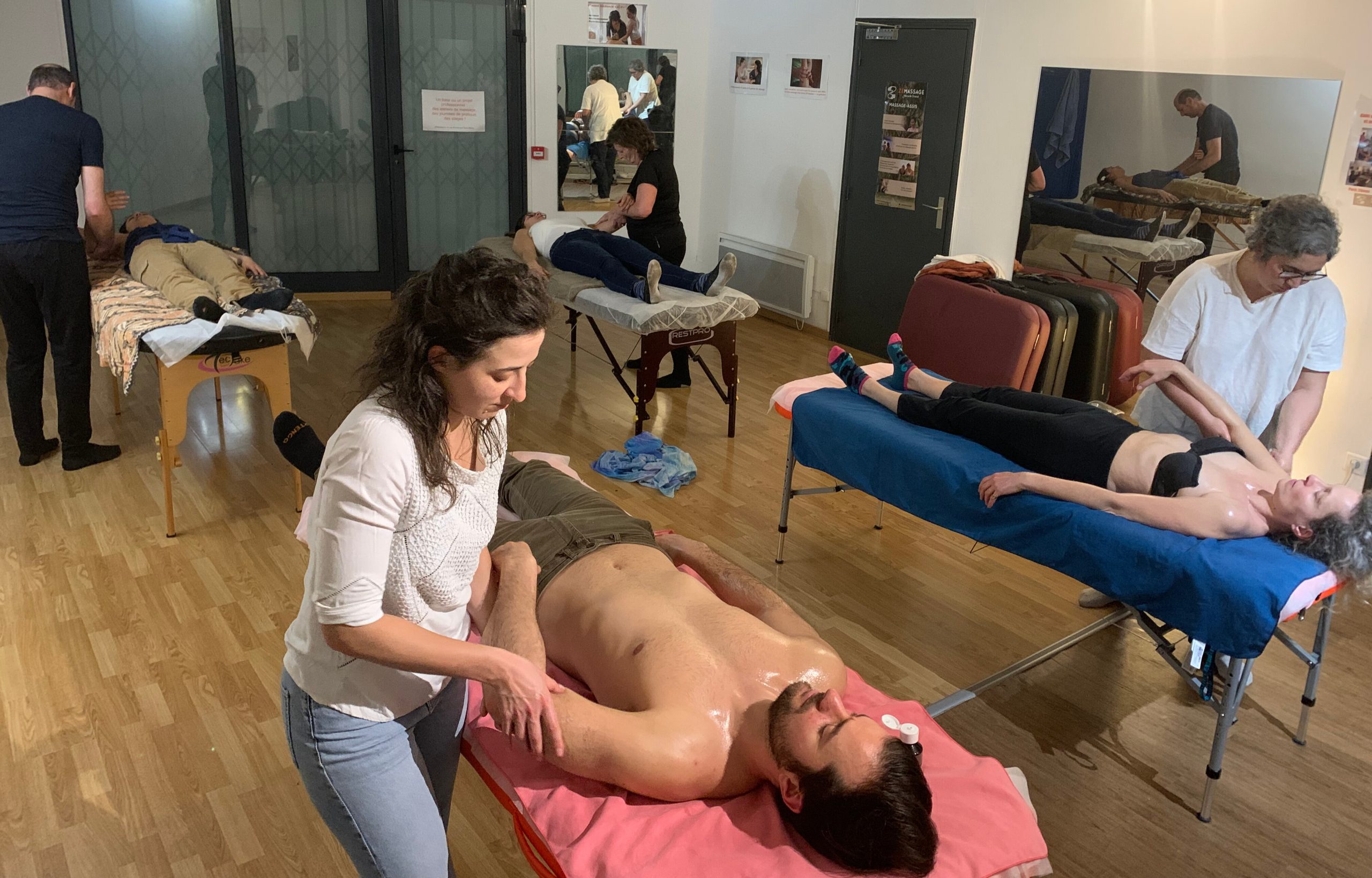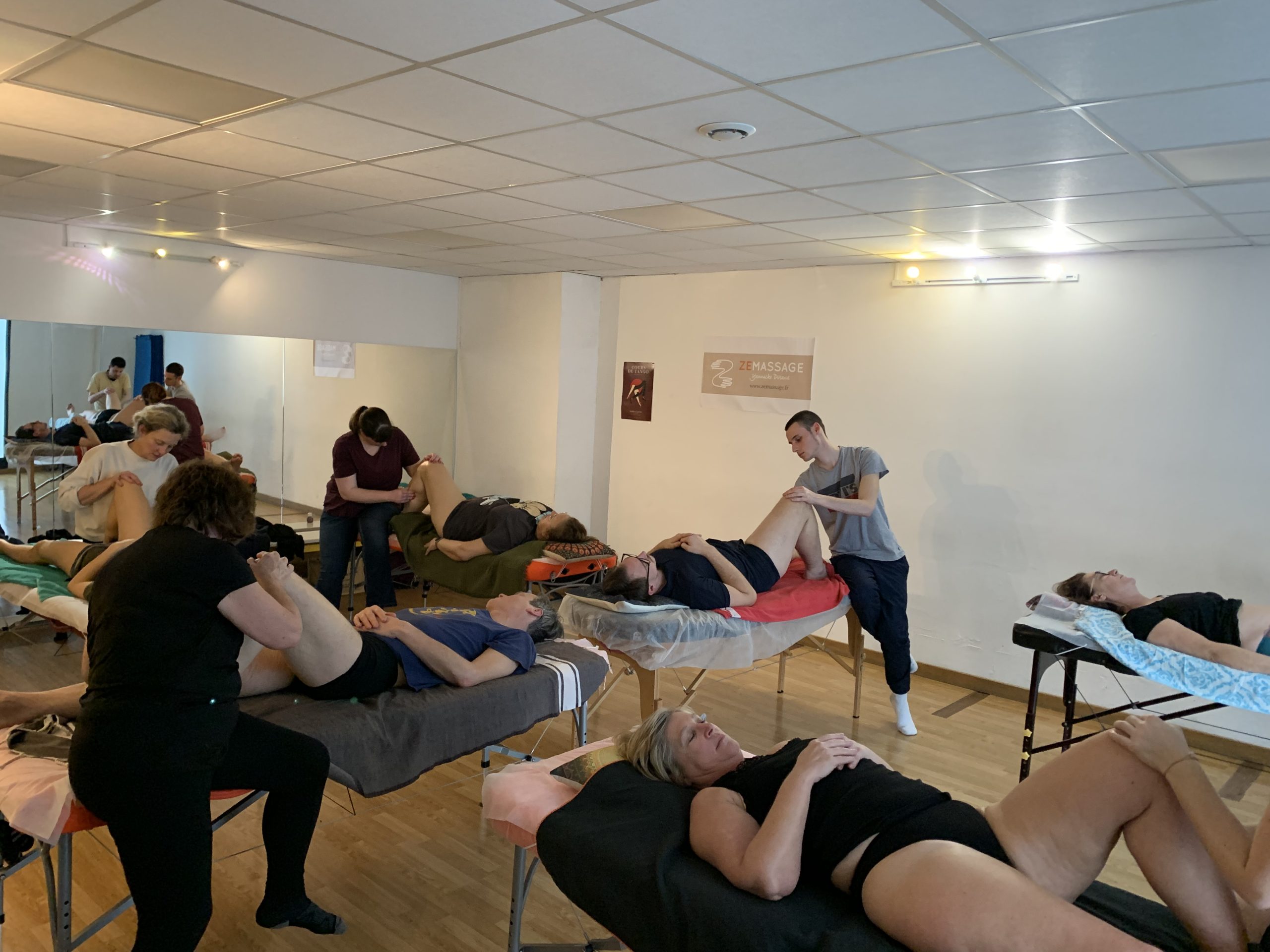 Les dix massages d’entraînement de 40 min sont à effectuer apres les stages d’initiation : cinq après chaque stage. Après avoir fait remplir aux massés testeurs le questionnaire correspondants fournis lors des stages.
